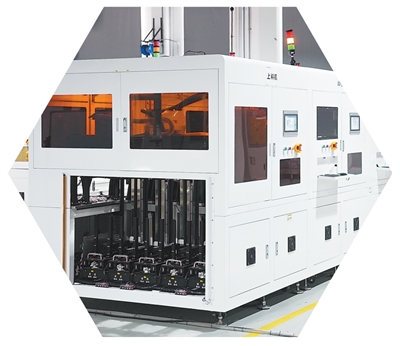 一台机械模组上,鼠标、无线、手机后盖等电子零部件一字排开,陪伴闪灼的光斑快速扭转、上下翻转…。