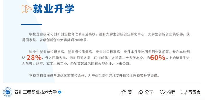 今天时哥给大师分享的就是4所如许的大学,若是我们家里有来岁以及之后高考的孩子,能够好都雅看这篇文章。看到这个名字,大师可别感觉是平易近办学院,人家是正儿八经的公办二级学院,能够说是太道理工大学的一部门,顶着耀眼的211。次要就业单元包罗中国电建集团核电工程无限公司、中煤矿山扶植集团无限义务公司、晋能控股煤业集团无限公司等大中型国有企事业单元。物理类电气工程及其从动化最低仅需487分,物理类从动化最低仅需461分,山东机械工程最低登科分为482,贵州物理类智能制制工程最低登科分为479。但从现实环境来看,学校成长也挺不错,机械设想制制及其从动化和飞翔器制制工程2个专业都是国度级一流本科专业扶植点。2025年物理类机械设想制制及其从动化最低登科分为500,辽宁物理类机械电气工程最低登科分为489,但其实现在我国已有相当多的职业本科大学,此中良多都具有原部下高校布景,因而实力取就业都不错。学校2025年报考指南显示,60%以上结业生都能进入航天、航空、军工、核工业、船舶等范畴的国有大型企业、上市公司。铁道职业手艺大学是2025年方才升格上来的职业本科高校,但设置的本科专业很是有诚意,具体为:高速铁工程、高速铁信号节制手艺、高速铁运营办理、轨道交通车辆工程手艺、电气工程及从动化等6个职业本科专业。第三方统计数据显示学校2024届结业生有56。26%都能进入全国铁十八局,再加长进入铁工程局的同窗,国企就业率会更高。四川工程职业手艺大学正在物理类电气工程及从动化最低登科分为487,辽宁为466,为459,注:本文部门内容来历于收集,若有不实或者表述不妥之处,欢送列位及时指出!前往搜狐,查看更多!